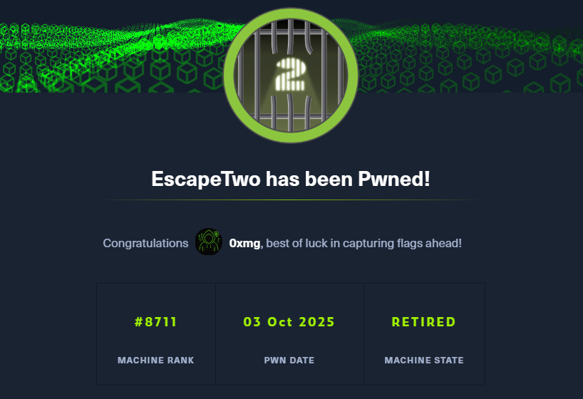 EscapeTwo starts with simple windows account with creds. I will use those to find a broken Excel workbook that contains a passwords to get sa access to MSSQL. From there I’ll enable xp-cmdshell and get a foothold on the box. There I’ll find more creds and pivot to the first user. I will abuse a WriteOwner privilege on a service account to get access as that account. The service account can exploit ESC4 in the ADCS setup to get Administrator access.