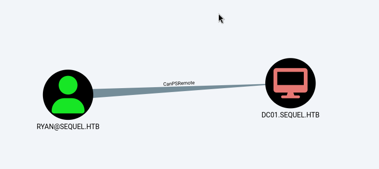 MATCH p1=shortestPath((u1:User)-[r1:MemberOf*1..]->(g1:Group)) MATCH p2=(u1)-[:CanPSRemote*1..]->(c:Computer) RETURN p2. i found that ryan user can WinRM to DC