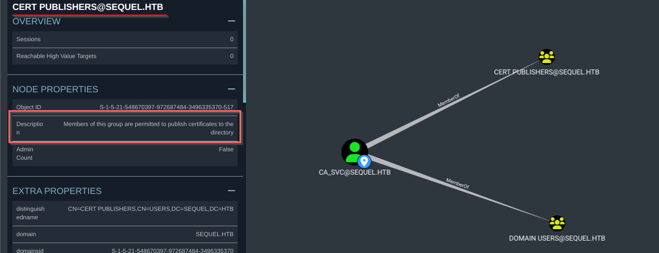 Full Control Principals : SEQUEL.HTB\Cert Publishers