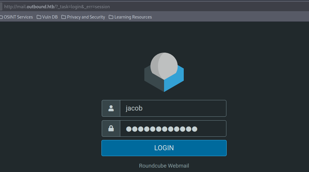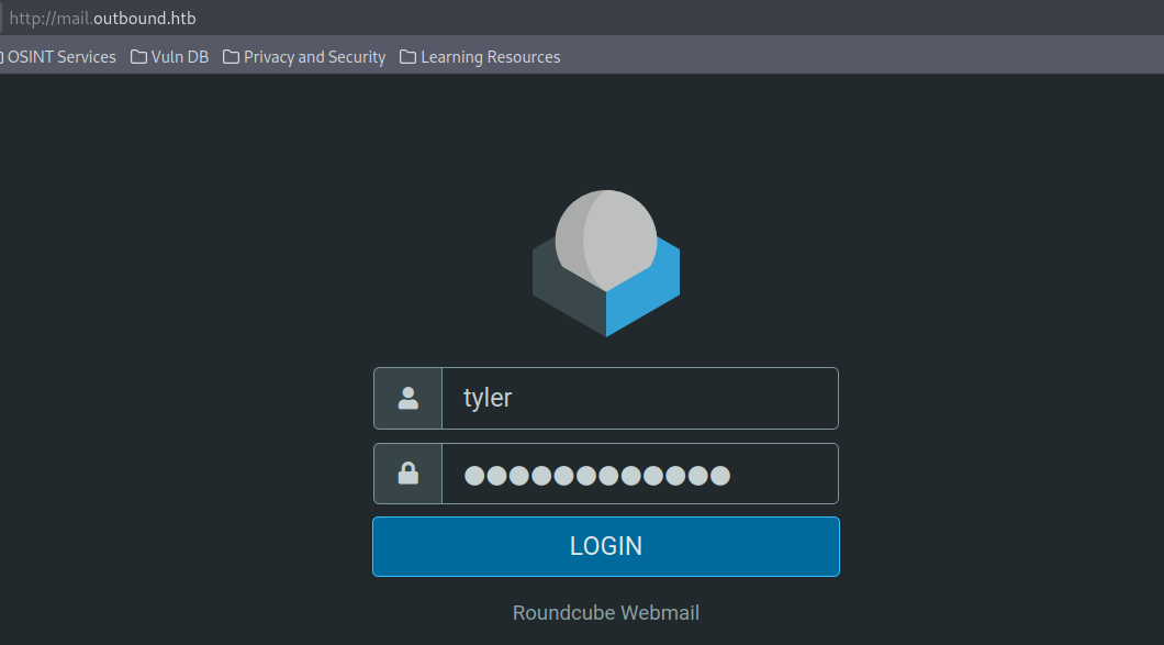 RoundcubeWebmail - we can log in using provided creds